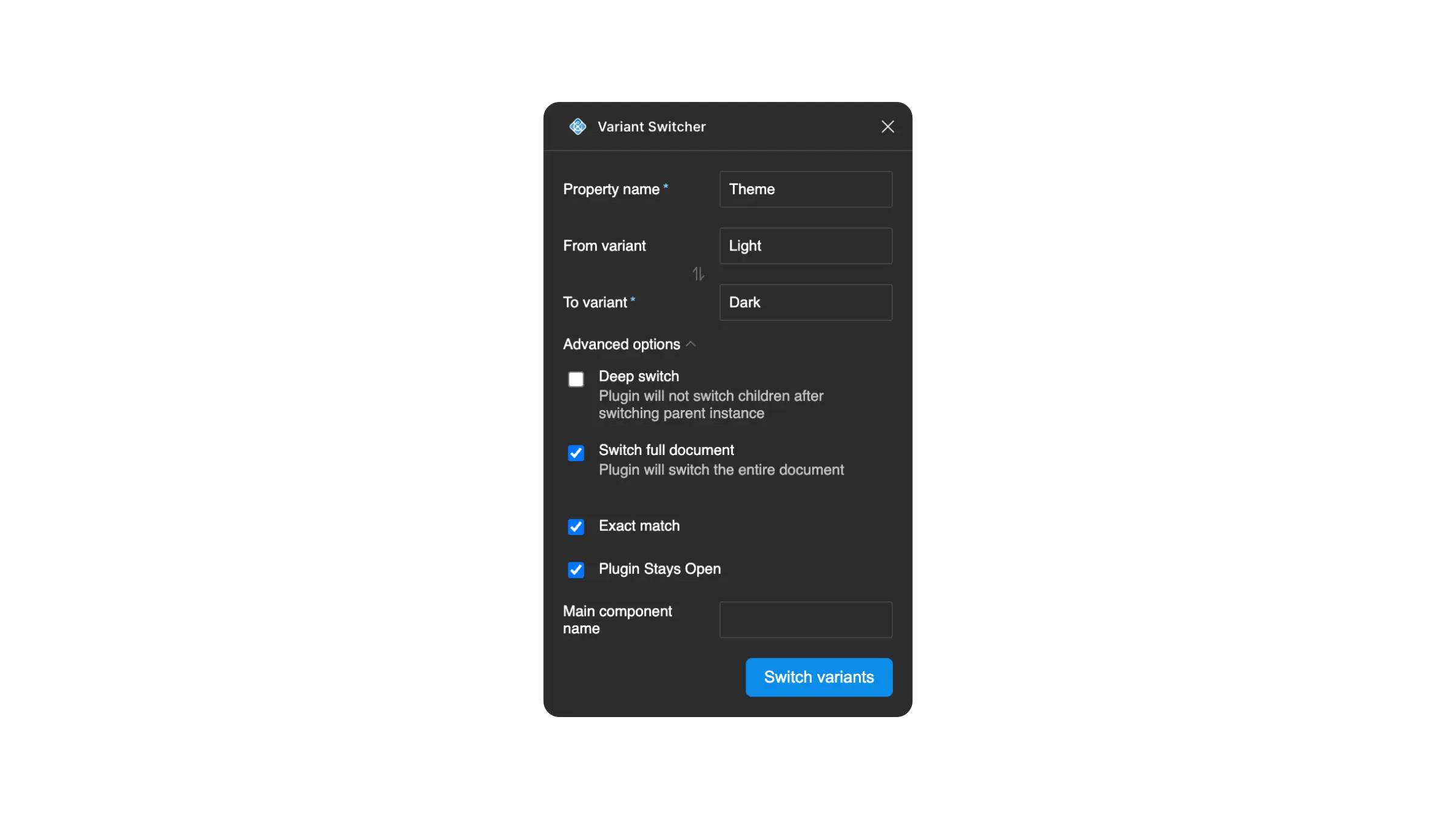 Variant Switcher allows you to bulk switch variants for one component in an entire document.