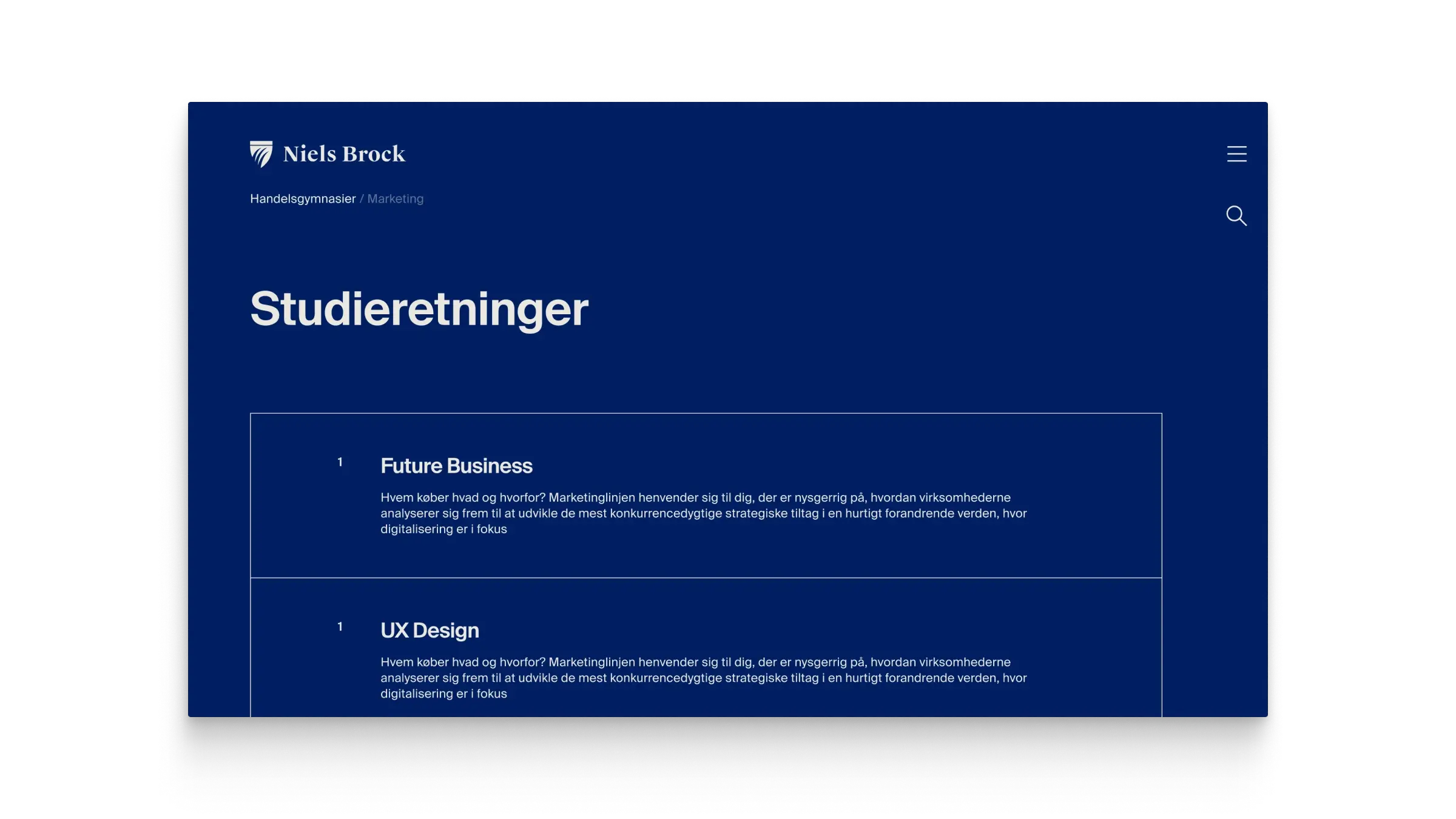 I worked closely with the client, Niels Brock's editors, and Senior Advisor Carsten Nielsen at Limbo who was in charge of Information Architecture, Content Mapping, and Wireframing for this project.